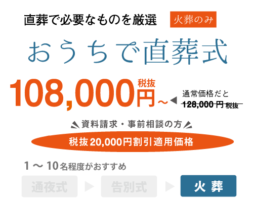 | 日程 | 火葬のみ | 通夜・葬儀 | 通夜・葬儀 |